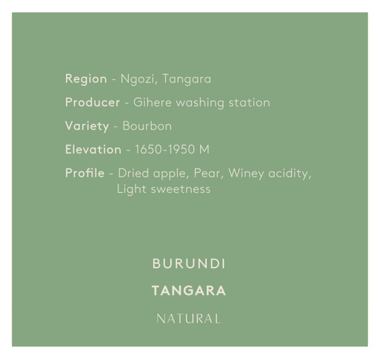 בורונדי, טנגרה | פירות יבשים | מתיקות עדינה | חמיצות קלה | עיבוד נטורל | קליה בהירה